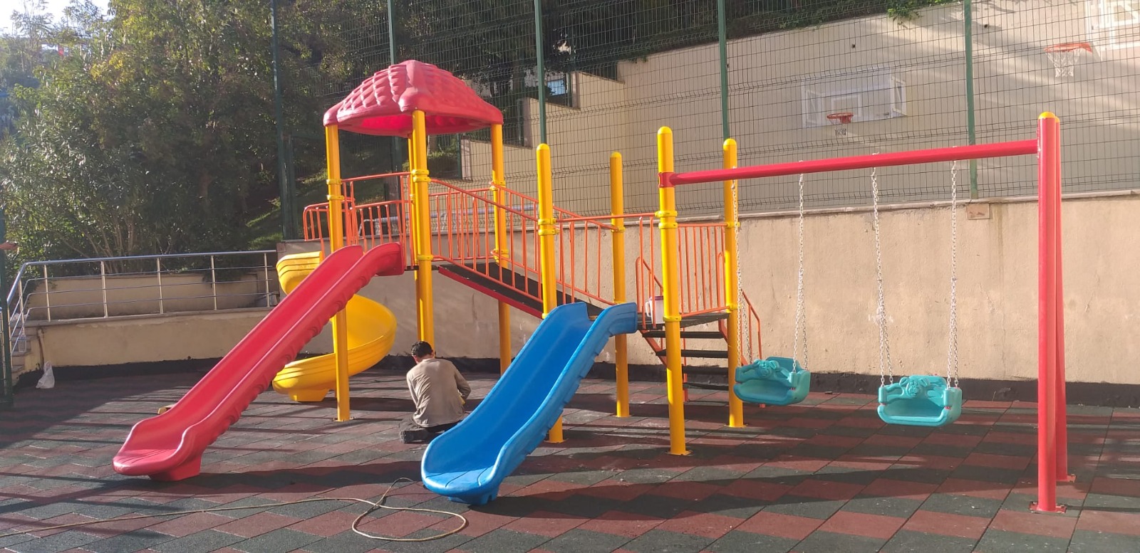 Oyun grubunda 1 adet 1 metre düz , 1 adet 1,5 metre spiral kaydırak ve çiftli salıncak bulunur.